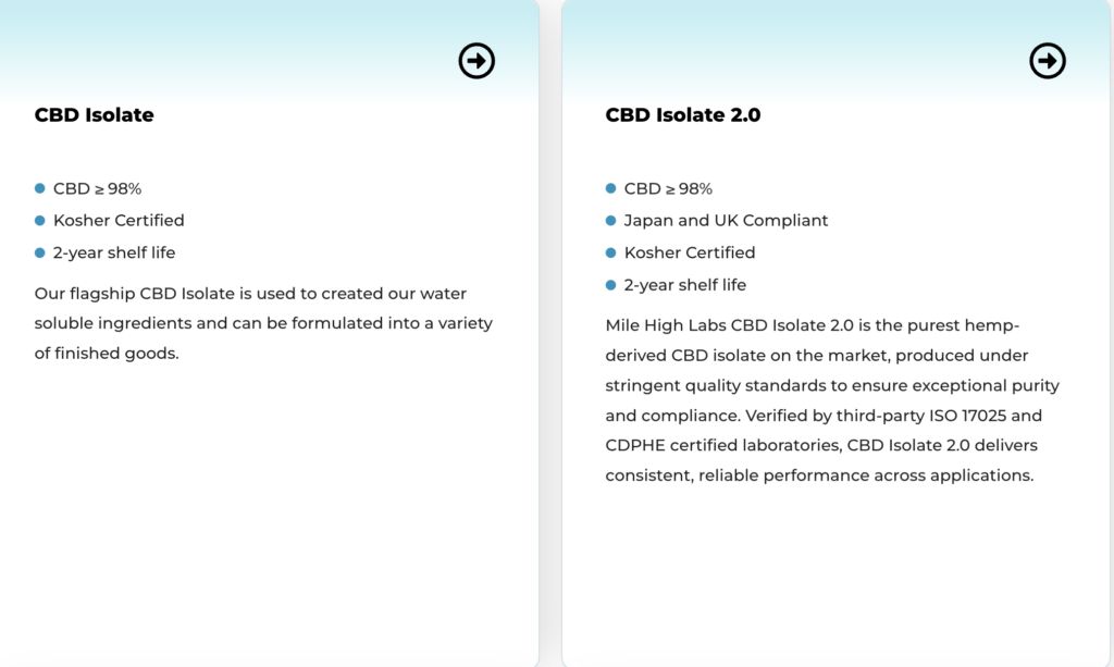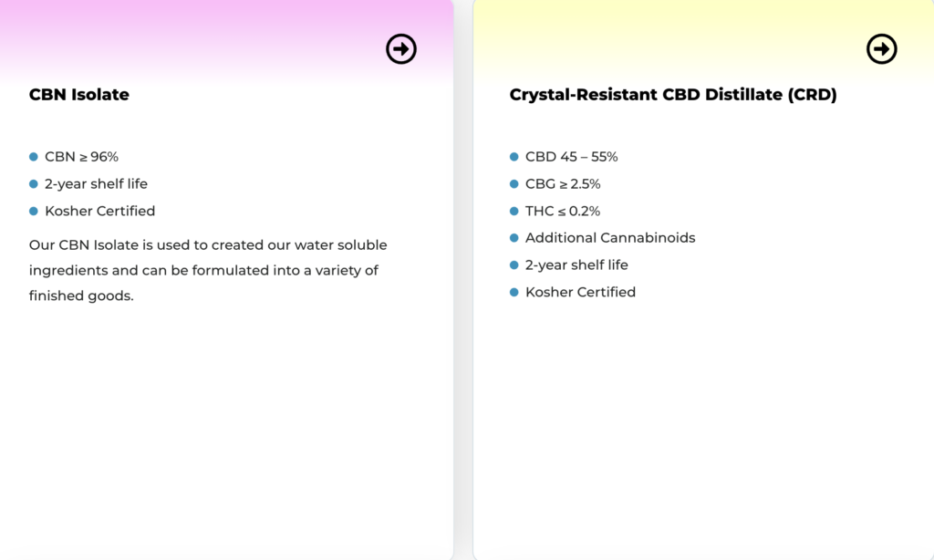 • Bulk ingredient sourcing (CBD Isolate, Water-Soluble, Distillate)