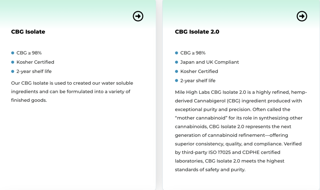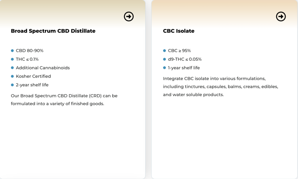 • High-purity cannabinoid ingredients (CBD, CBG, CBN, CBC)